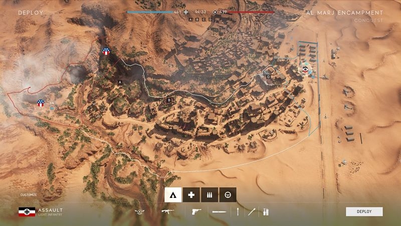 L'un des avantages de la nouvelle carte Battlefield V est que vous pouvez configurer 4 ou 5 drapeaux. Les domaines qu'il possède sont une fouille, un marché aux épices, un camp et un canyon.