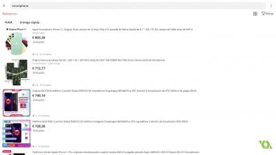 Sur la couverture de l'application, vous pouvez rechercher des choses qui vous intéressent, par exemple des chaussures de sport ou des vêtements d'hiver, des sandales, comme vous pouvez le voir, les annonces avec les différents prix nous montreront très similaires à ebay ou au marché libre. Vous avez la possibilité de le trier par pertinence, prix (croissant), prix (décroissant), nombre de ventes, score du vendeur, date (récente en premier). Si je le commande par prix croissant, je vois le moins cher que je peux trouver, il me montrera les photos, la description pas si littéralement traduite, le prix, les évaluations, la quantité vendue et si j'ai un coupon ou une remise.